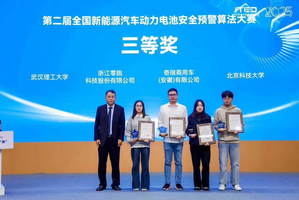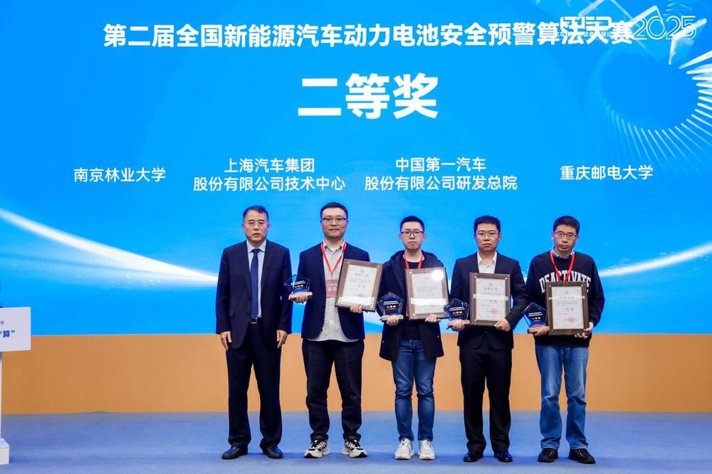 分论坛举行了第二届全国新能源汽车动力电池安全预警算法大赛颁奖仪式,由周玉林董事长为获奖单位颁发证书和奖杯。